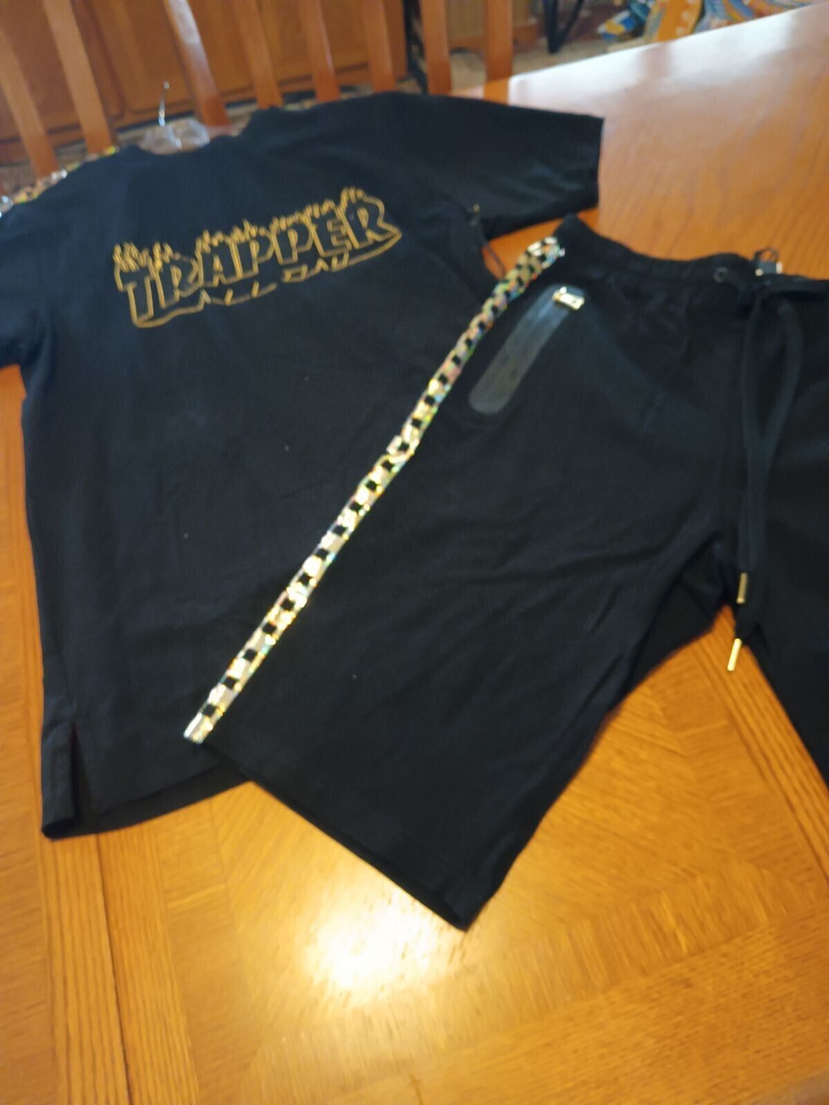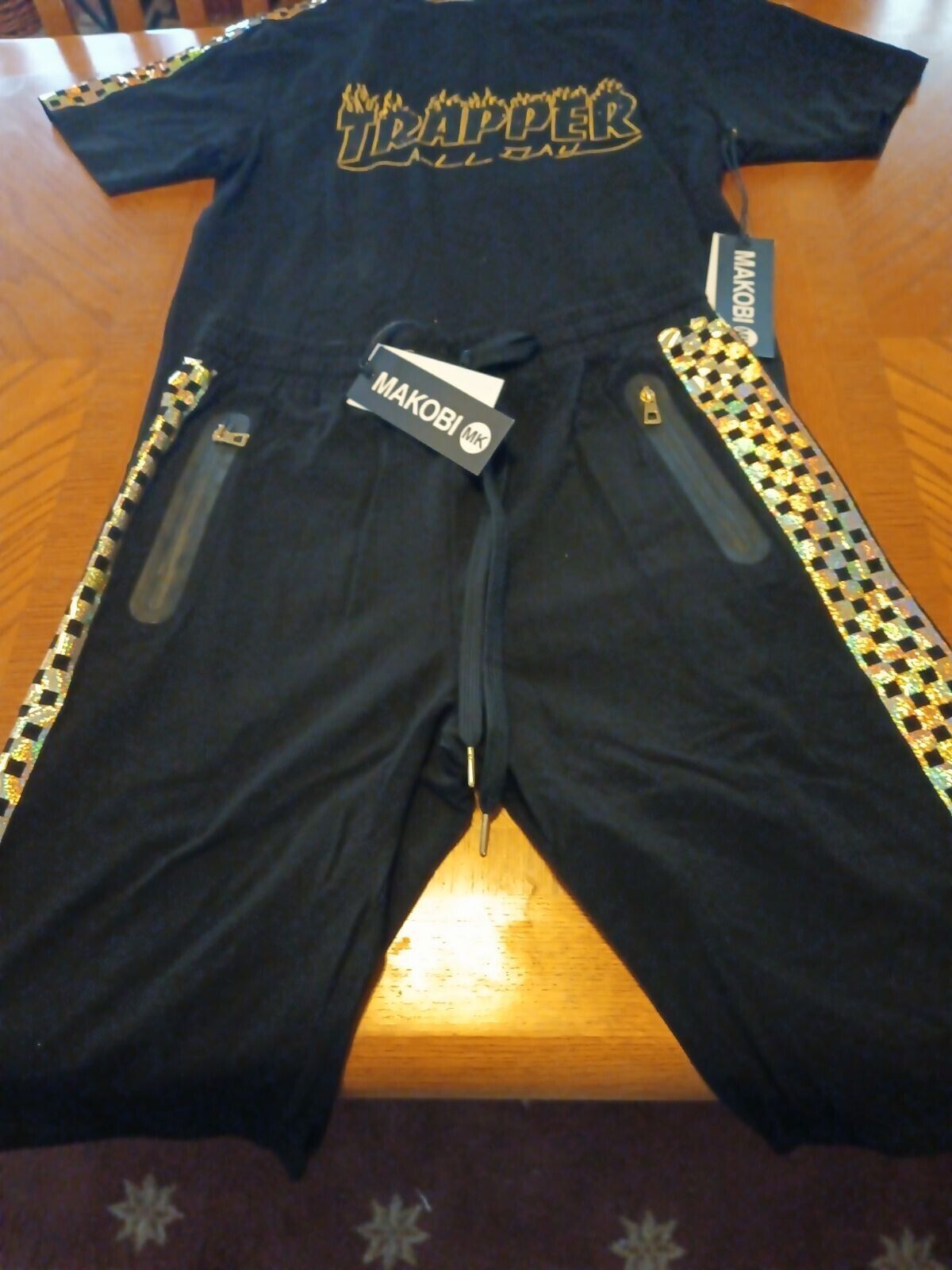 MAKOBI Trappers Black & Gold Foil Hip Hop STREET Wear Party SHORT SET Size 2XL is a...