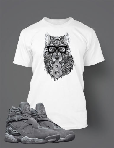 Graphic Wolf T Shirt to Match Retro Air Jordan 8 Cool Grey Shoe