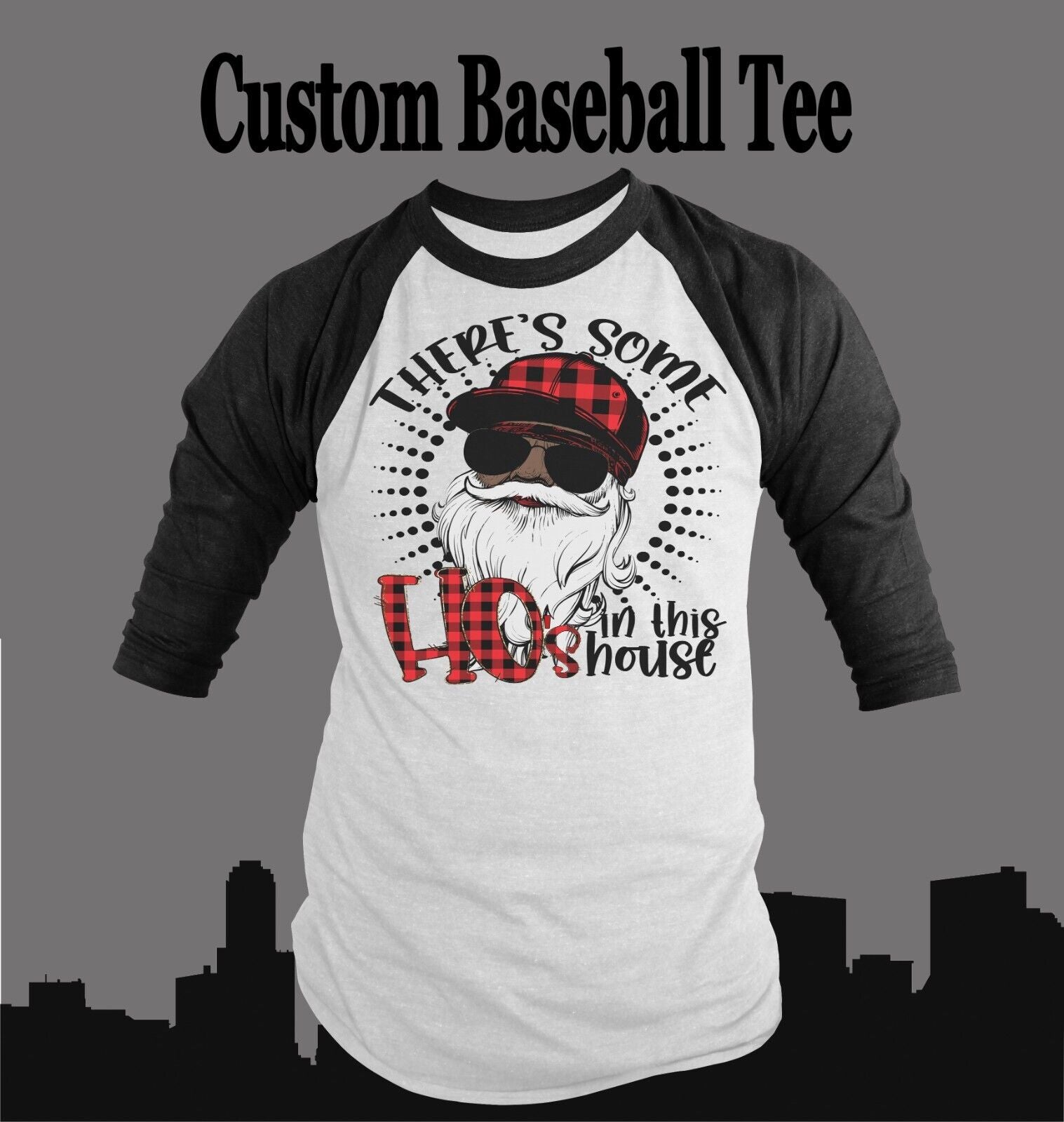 Santa There's Some Hos in This House Funny Santa Claus Christmas Baseball Tee
